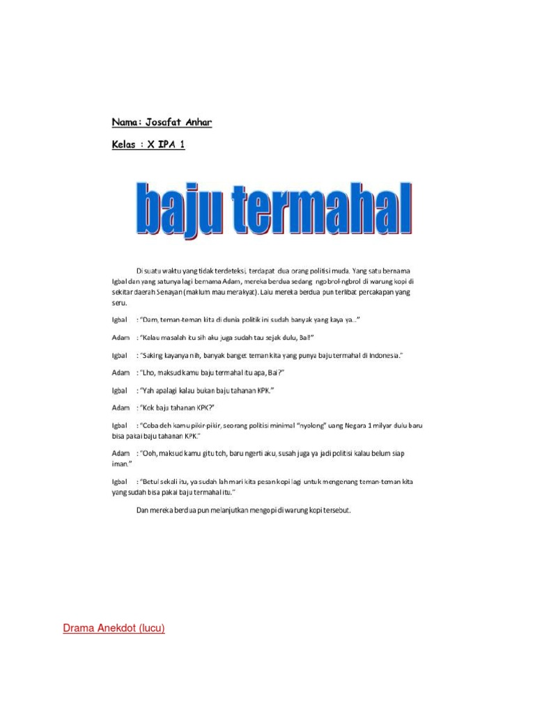 Contoh teks anekdot lucu, singkat, beserta strukturnya. Ketika lonceng sekolah mulai berbunyi di kota a, bu guru mulai masuk ke kelas satu persatu. Bambang merupakan seorang murid yang terkenal karena sangat bandel di sekolah. Lebih berharga sandal daripada uang rakyat. Selain memuat cerita yang lucu, teks anekdot juga bisa. Ketika pelajaran dimulai,terjadi dialog antar ibu guru dan muridnya guru :anak anak,gimana perasaan kalian. Teks anekdot adalah teks yang biasanya berbentuk cerita pendek yang lucu, tapi penuh dengan kritik dan sindiran. Mau kemana setelah lulus sd.